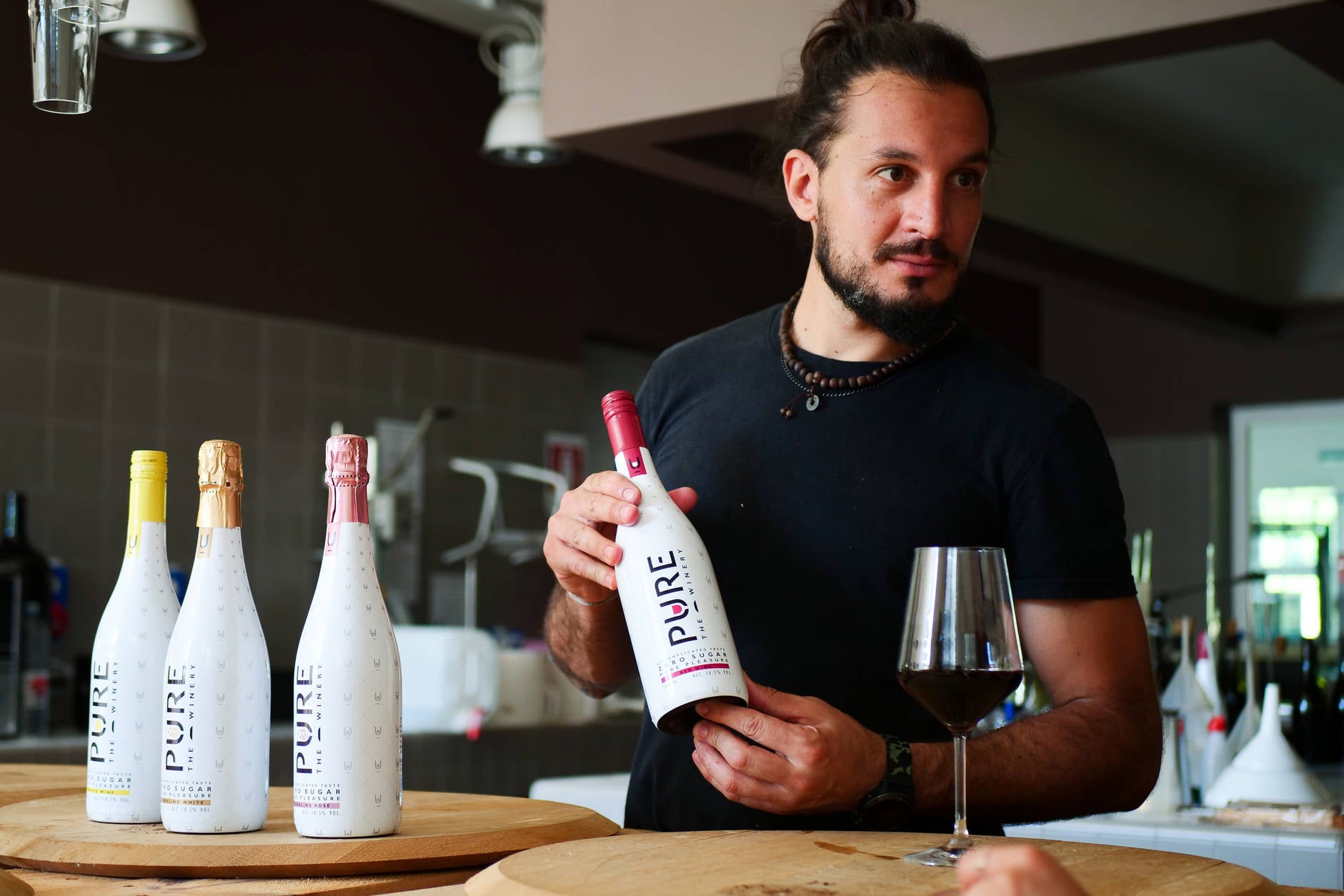 PURE The Winery Zero Sugar Wines contain at least 30% fewer calories compared to wines with ≥ 12% alcohol, carbohydrates, and sugar. PURE The Winery wines have 10.5% alcohol, 0 grams of carbohydrates, and 0 grams of sugar.